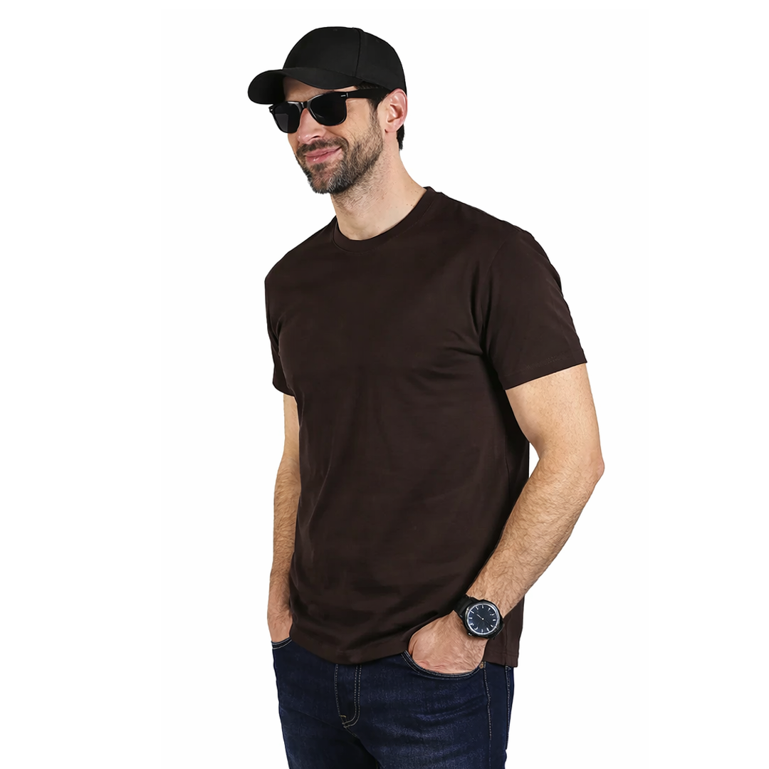 Udobna i moderna muška majica kratkih rukava u braon boji predstavlja odličan izbor za različite prilike.