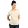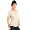 Ženska majica kratkih rukava bež boje, sa svedenim krojem predstavlja praktičan i lako uklopiv komad garderobe.