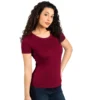 Ženska majica kratkih bordo boje, sa svedenim krojem predstavlja praktičan i lako uklopiv komad garderobe.