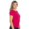 Ženska majica kratkih rukava ciklama boje, sa svedenim krojem predstavlja praktičan i lako uklopiv komad garderobe.