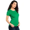 Ženska majica kratkih rukava keli zelene boje, sa svedenim krojem predstavlja praktičan i lako uklopiv komad garderobe.