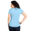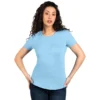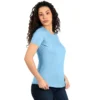 Ženska majica kratkih rukava svetlo plave boje, sa svedenim krojem predstavlja praktičan i lako uklopiv komad garderobe.